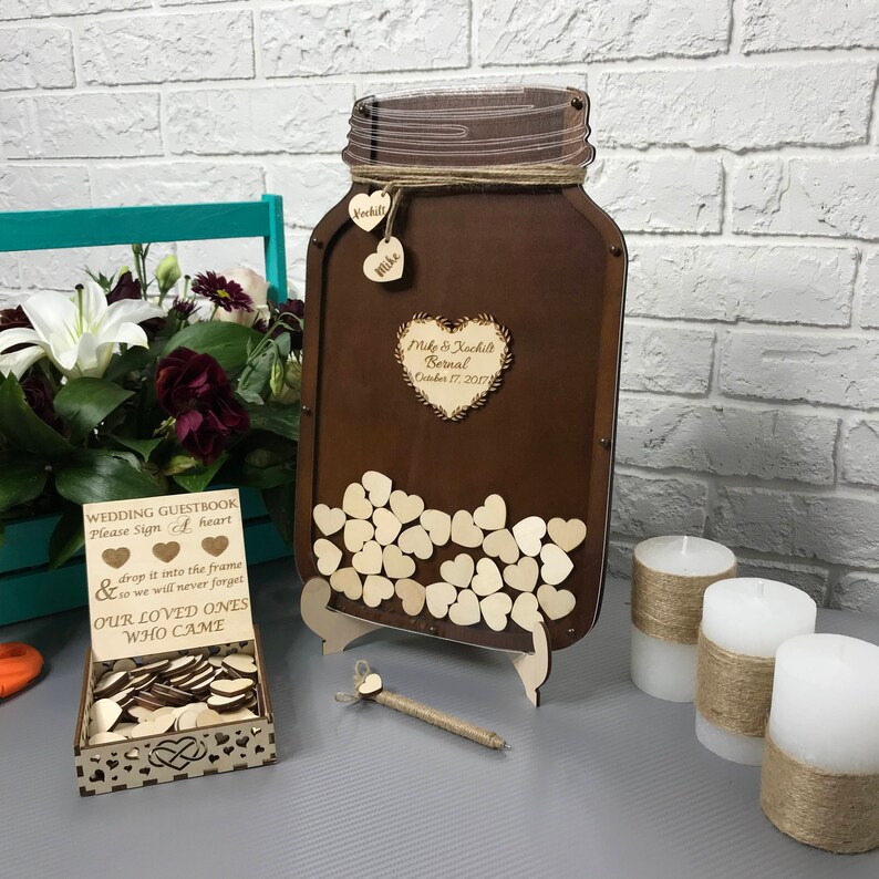 Diy | 'date jar' guest book. To kick off your search, we've combed the internet to find some of the most unique wedding guest books that you here's another alternative wedding guest book idea if you're having a vineyard wedding: I'm always searching and thinking about creative new ideas for wedding guest books let your guests fill the jar all night long… and maybe even throw a couple in yourself. Enhance your purchase your guests will have great fun signing the wooden hearts and dropping them in the mason jar wedding guest book only.unique guest book for wedding, mason jars for crafts, mason jars for weddings. Truly, the wish jar is a cheap, creative idea for a guest book and an elegant way to remind newlywed couples of the loved ones who helped them celebrate their happy day.